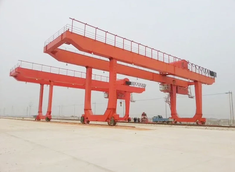本起重機是一種在地面軌道上運行的起重機。起重量10-35/10噸,工作環(huán)境溫度-25~40℃。具有過載能力強、工作范圍大、工作平衡等特點,適用于大跨度,裝卸作業(yè)頻繁的鐵路貨場、港口、露天倉庫、集裝箱中轉(zhuǎn)站等。該機采用U型門架,其過腿凈空大(近7m),適用于長大笨重貨物和集裝箱裝卸作業(yè),該機導(dǎo)電形式有滑觸線和電纜兩類,優(yōu)先推薦滑觸線形式,訂貨時應(yīng)明確導(dǎo)電形式和位置。